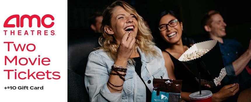 AMC Movie Pack! Get two movie tickets and a $10 Gift Card.